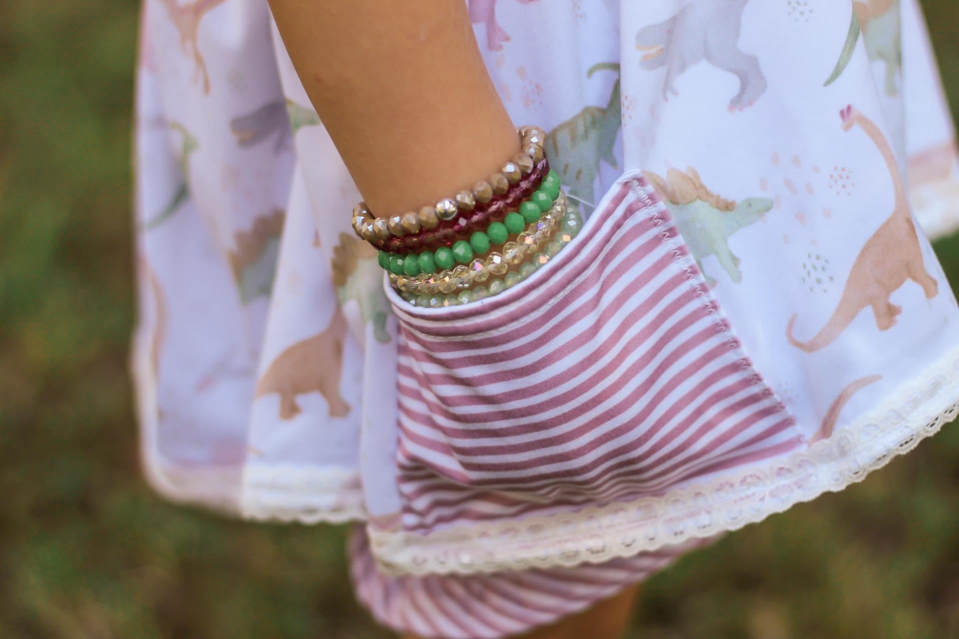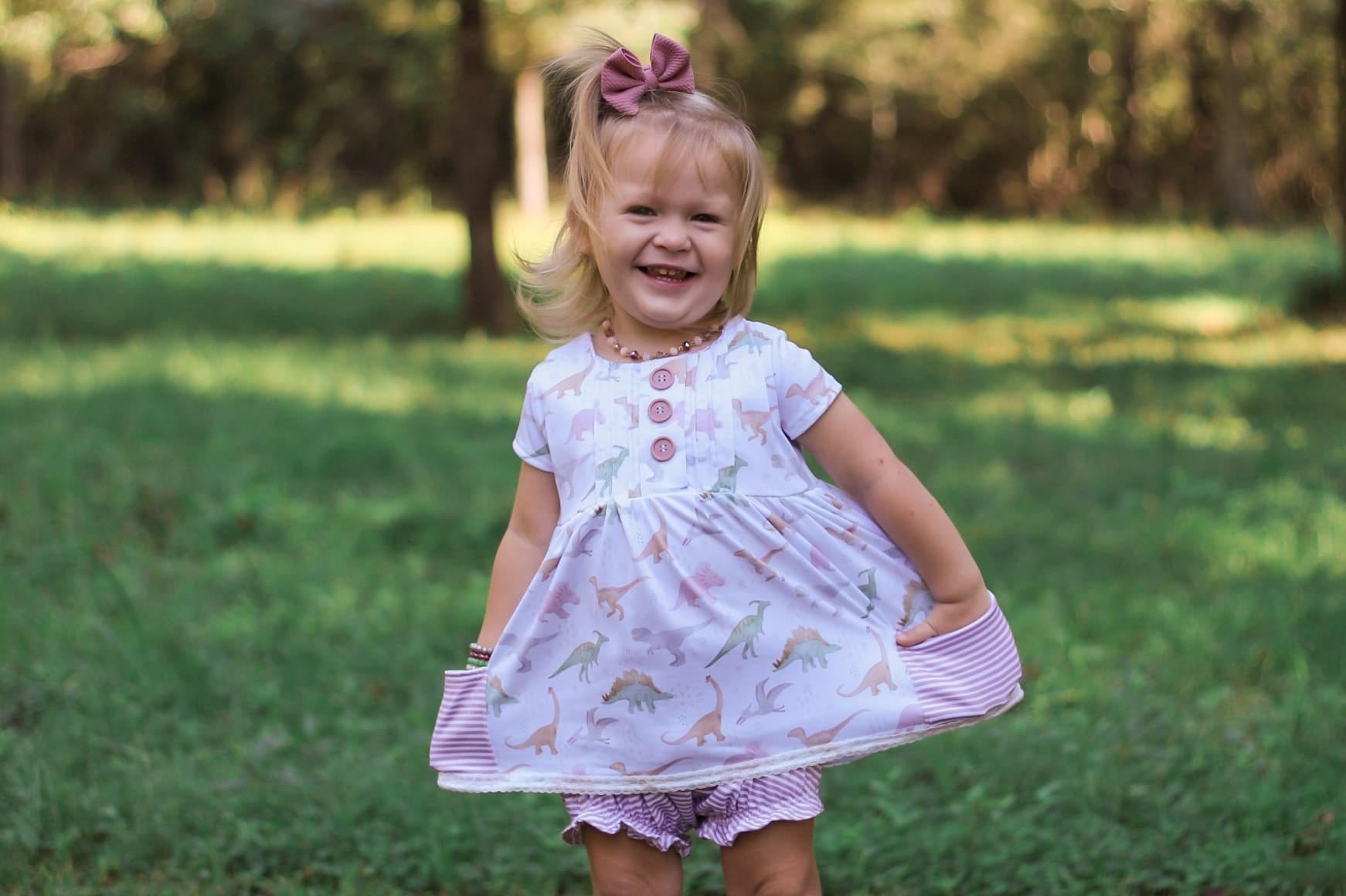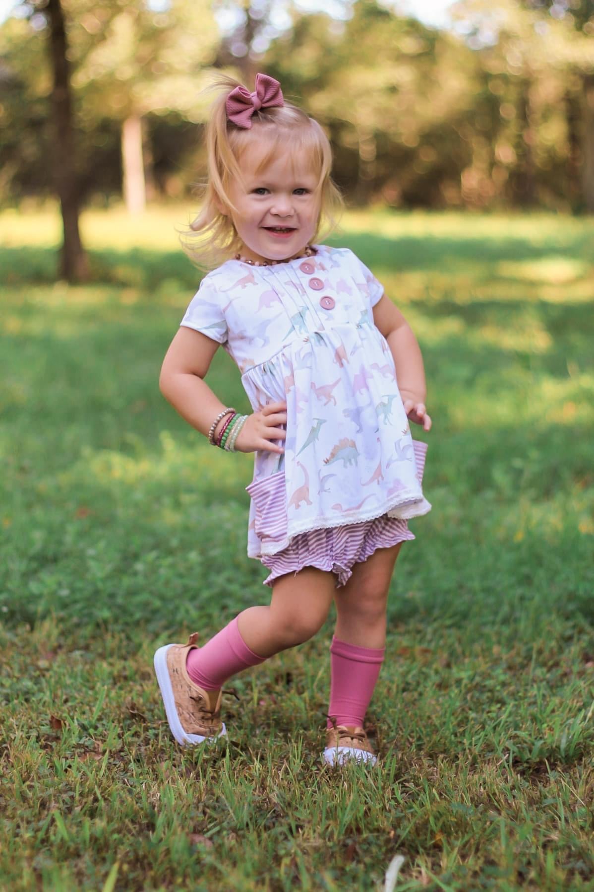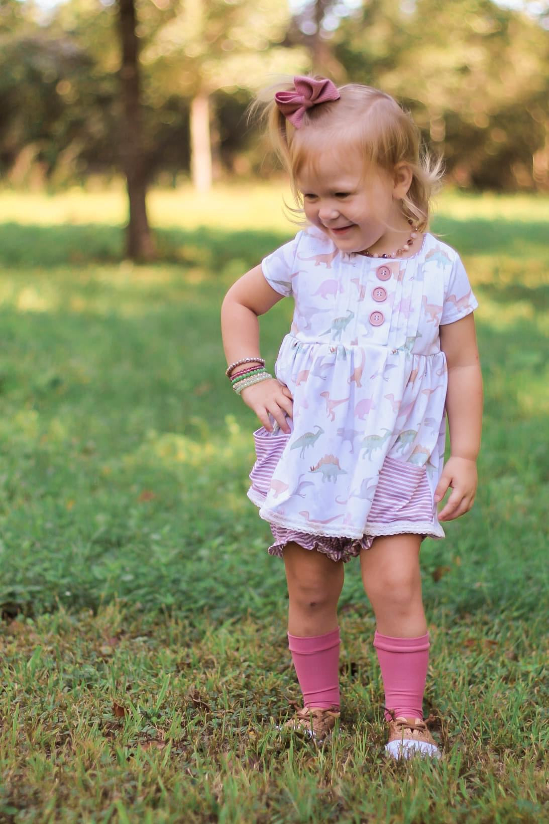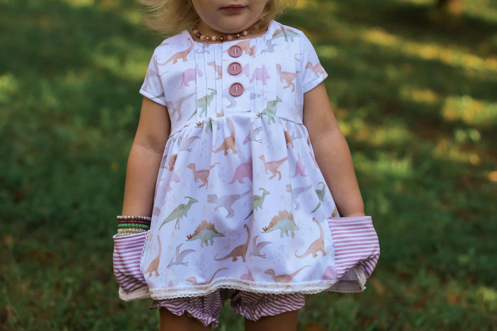 Adorably sweet vintage length dress with bloomers (or leggings). Lace detail, pockets, pleats and buttons. What more could you need? :)